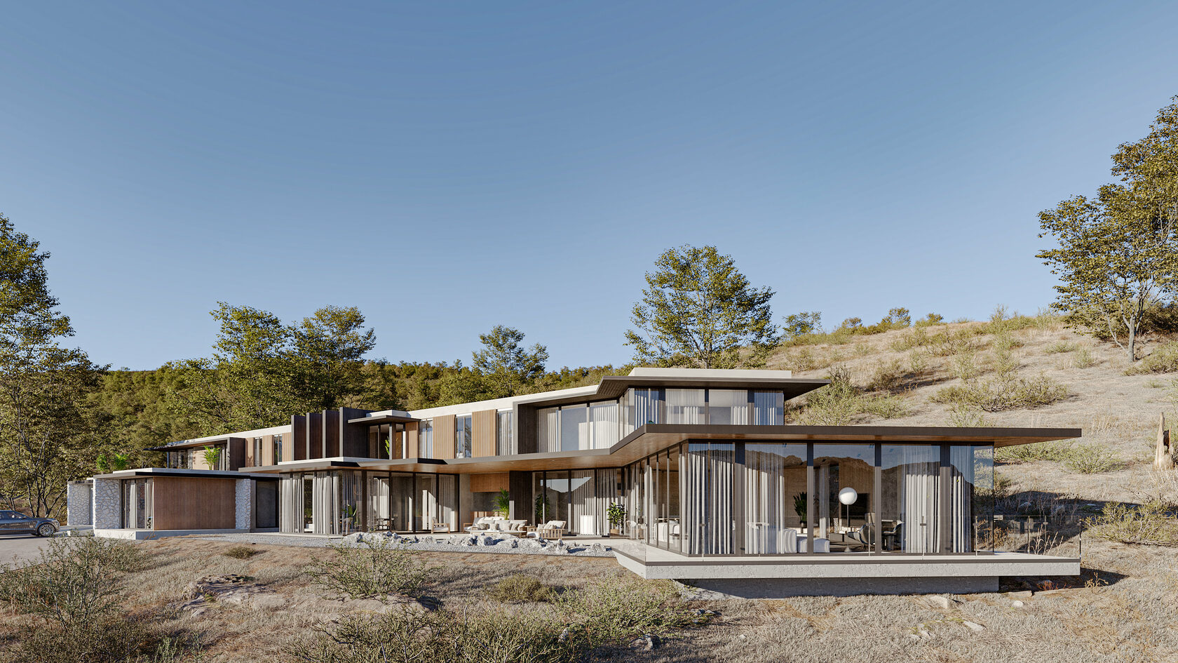 THIS TYPE SHOWS MASS BUILDING AND RESIDENTIAL COMPLEXES. IT CAN BE ESPECIALLY USEFUL FOR REAL ESTATE AGENCIES WHEN SHOWING DEVELOPMENT PROPERTIES OF ENTIRE DISTRICTS. MOREOVER, AERIAL VIEW RENDERING IS RELEVANT WHEN A RENDERING STUDIO WORKS WITH SKYSCRAPERS OR LANDSCAPE.